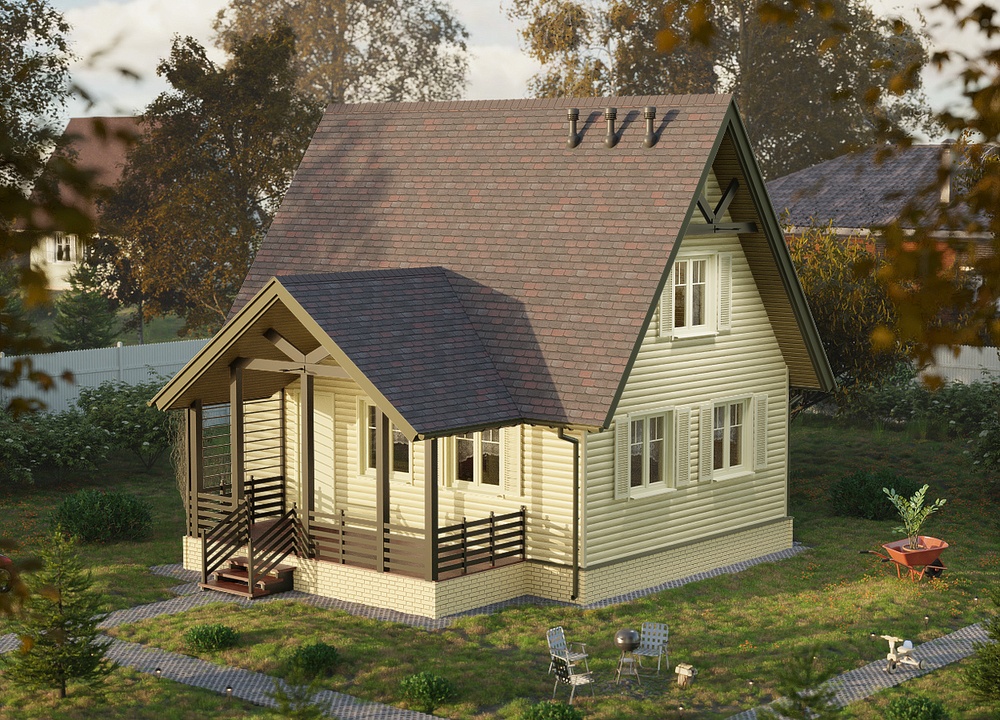 Благодаря глубокой офсетной печати по горячей поверхности панели сайдинга не тускнеют и не выгорают на солнце, сохраняя красивый натуральный тон и естественный древесный рисунок. Для облицовки фасада в единой эстетике используйте углы и профили в цвете «Яблоня».