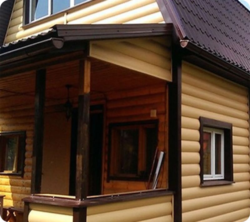 Благодаря простой системе крепления и удобной форме панелей двухпереломным малым сайдингом «Блок-хаус» можно отделать строения любых размеров, вплоть до самых небольших – бани, беседки, гаражи и пр.